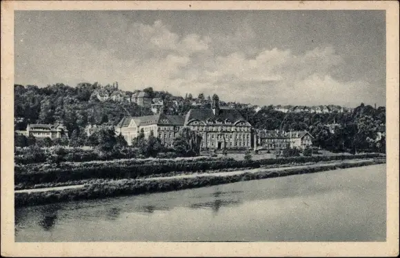 Ak Saarbrücken im Saarland, Saarpartie mit Regierungsgebäude