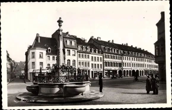 Ak Saarbrücken im Saarland, St. Johannermarkt, Brunnen, Geschäfte