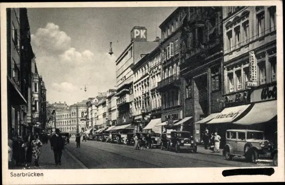 Ak Saarbrücken im Saarland, Straßenpartie, Autos, Lieser Konfektion, PK