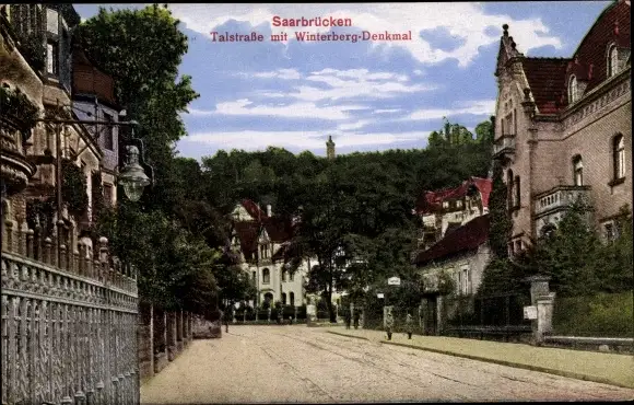 Ak Saarbrücken im Saarland, Talstraße, Winterberg Denkmal
