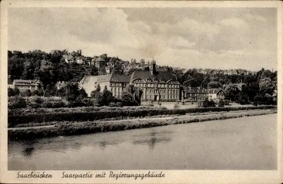 Ak Saarbrücken im Saarland, Teilansicht, Regierungsgebäude, Saar