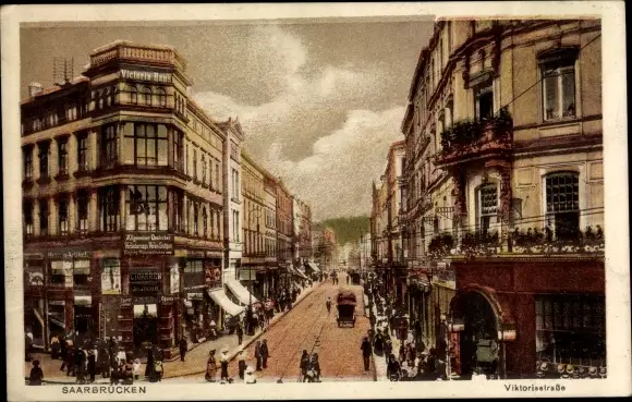 Ak Saarbrücken im Saarland, Viktoriastraße, Geschäfte, Passanten