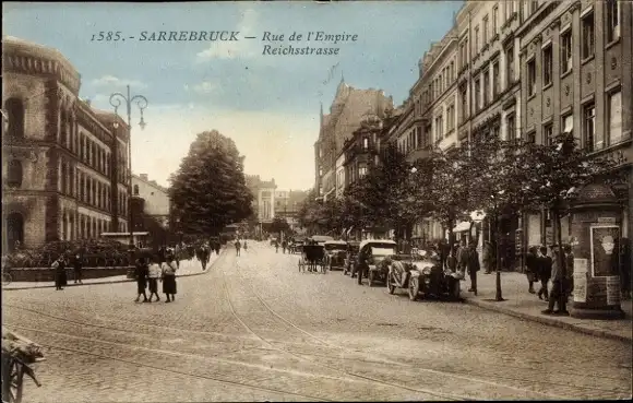 Ak Saarbrücken im Saarland, Vorderansicht der Rue de l'Empire, Reichsstrasse, Stadtansicht, Auto