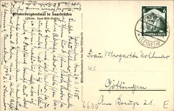 Zustand, siehe Scan, gelaufen, 1935 - ca 9 cm X 14 cm