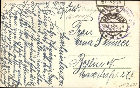 Zustand, siehe Scan, gelaufen, 1918 - ca 14 cm X 9 cm