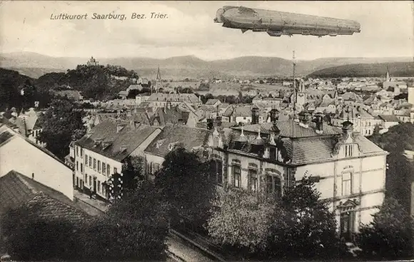 Ak Saarburg an der Saar Bezirk Trier, Zeppelin über der Stadt