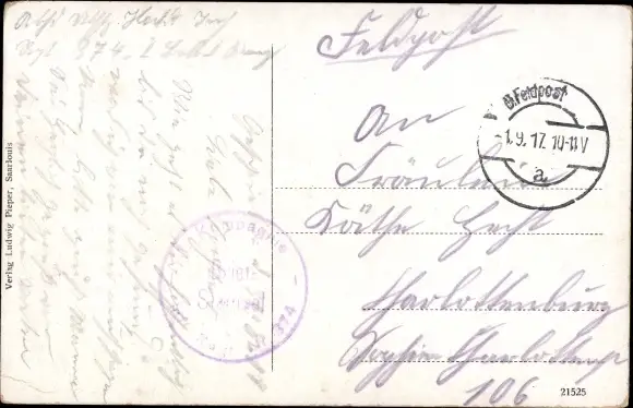 Zustand, siehe Scan, gelaufen, 1917 - ca 14 cm X 9 cm