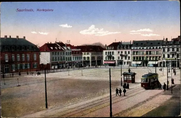 Ak Saarlouis im Saarland, Straßenbahn, Marktplatz, Schuhwaren