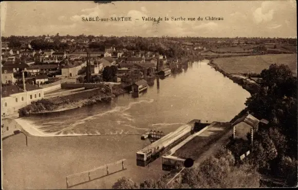 Ak Sablé sur Sarthe, Sarthe-Tal vom Schloss aus gesehen