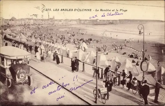 Ak Sables d'Olonne Vendée, Le Remblai et la Plage