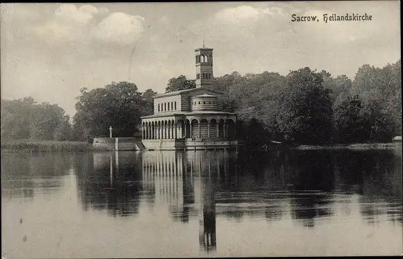 Ak Sacrow Potsdam, Heilandskirche vom Wasser aus gesehen