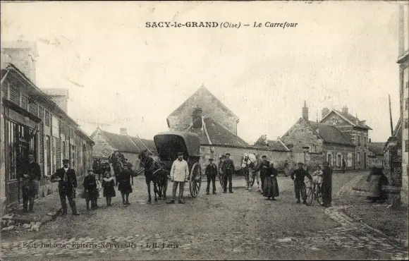 Ak Sacy-le-Grand Oise, Le Carrefour