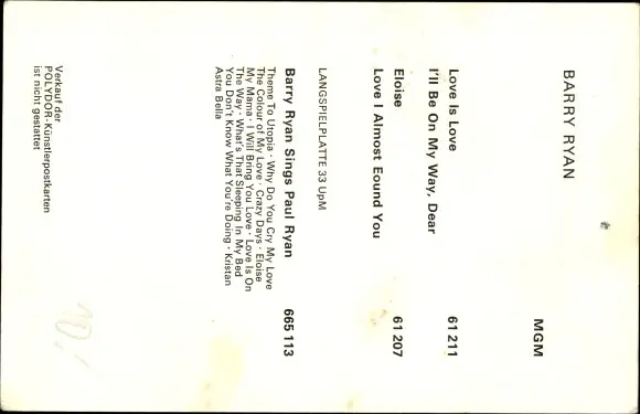 Ak Sänger Barry Ryan, Portrait, Polydor Schallplatten, Autogramm