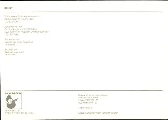 Ak Sänger Benny, Portrait, Autogramm