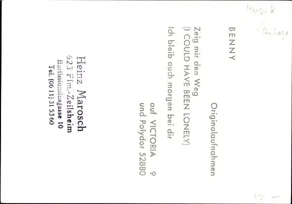Ak Sänger Benny, Portrait, Victoria, Autogramm