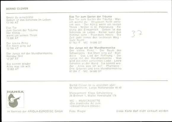 Ak Sänger Bernd Clover, Portrait, Autogramm
