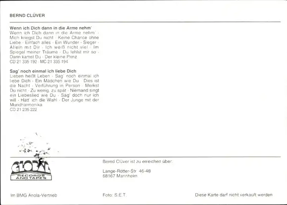 Ak Sänger Bernd Clüver, Portrait, Autogramm