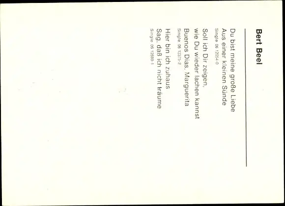Ak Sänger Bert Beel, Portrait, Autogramm