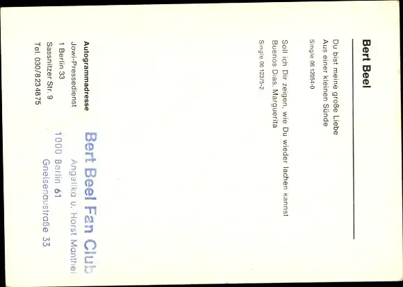 Ak Sänger Bert Beel, Portrait, Autogramm