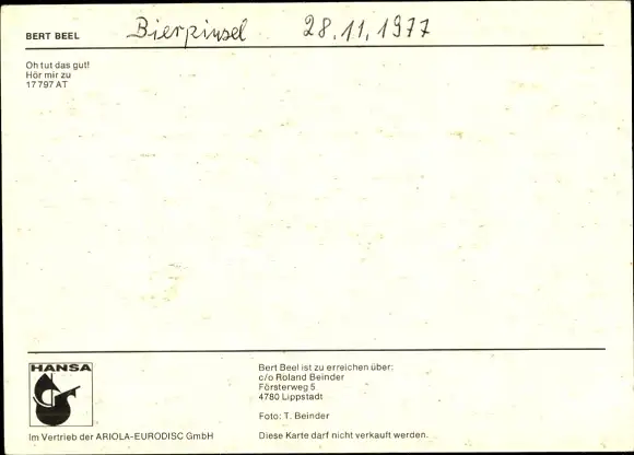 Ak Sänger Bert Beel, Portrait, Autogramm