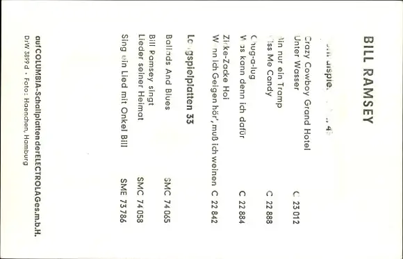Ak Sänger Bill Ramsey, Portrait, Autogramm
