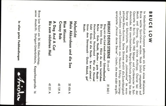 Ak Sänger Bruce Low, Portrait, Ariola-Schallplatten, Autogramm