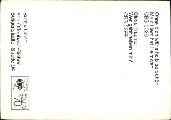 Ak Sänger Buddy Caine, Autogramm