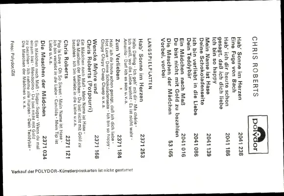Ak Sänger Chris Roberts, Portrait, Autogramm