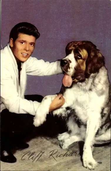 Ak Sänger Cliff Richard, Portrait mit Bernhardiner