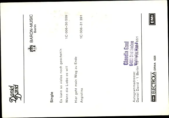 Ak Sänger Daniel David, Portrait, Autogramm
