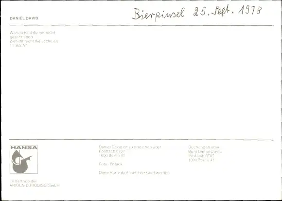 Ak Sänger Daniel David, Portrait, Autogramm