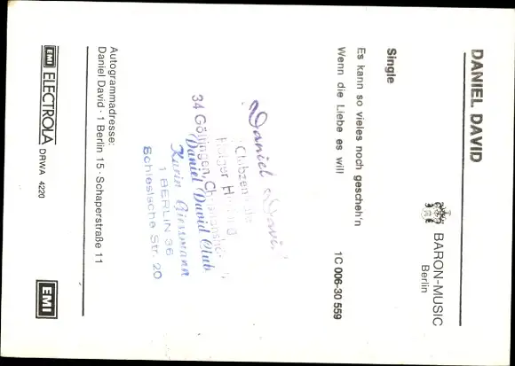 Ak Sänger Daniel David, Portrait, Autogramm