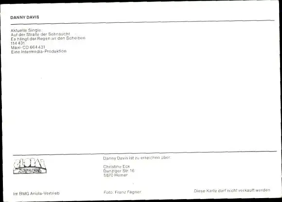 Ak Sänger Danny Davis, Portrait, Autogramm
