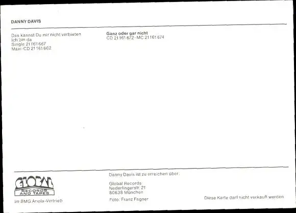 Ak Sänger Danny Davis, Portrait, Autogramm
