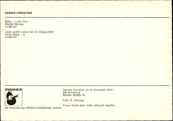 Ak Sänger Dennie Christian, Portrait, Autogramm