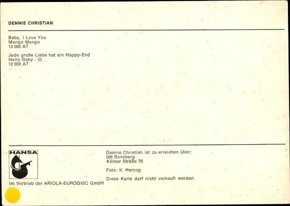Ak Sänger Dennie Christian, Portrait, Autogramm