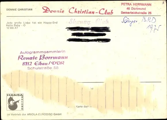 Ak Sänger Dennie Christian, Portrait, Autogramm