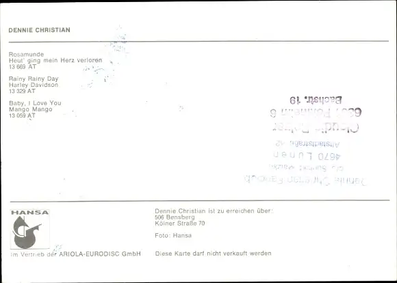 Ak Sänger Dennie Christian, Portrait, Autogramm