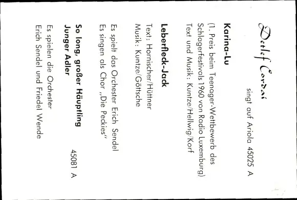 Ak Sänger Detlef Cordai, Portrait, Ariola Schallplatten, Autogramm