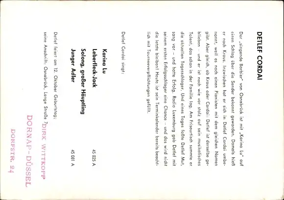 Ak Sänger Detlef Cordai, Portrait, Autogramm