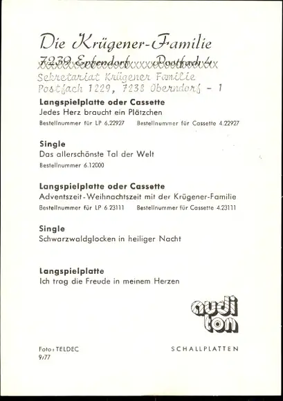 Ak Sänger Die Krügener-Familie, Portrait, Autogramm
