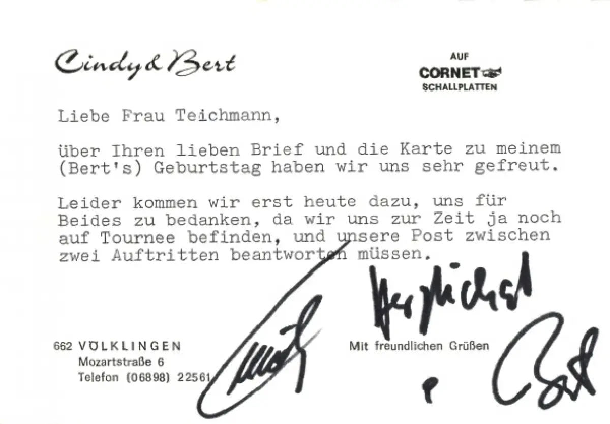 Ak Sänger Duo Cindy und Bert, Autogramme