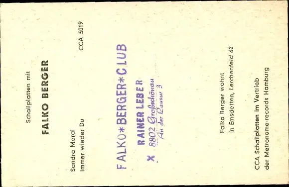 Ak Sänger Falko Berger, Portrait, Autogramm