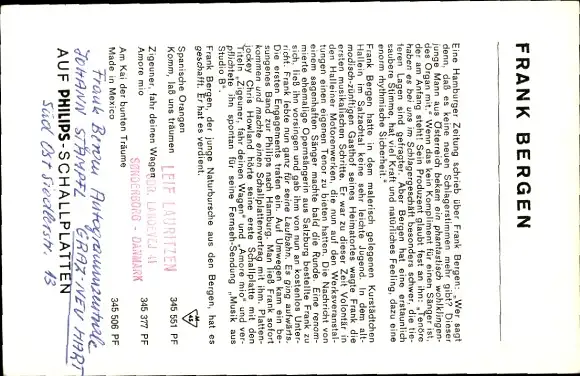 Ak Sänger Frank Bergen, Portrait, Gitarre, Autogramm