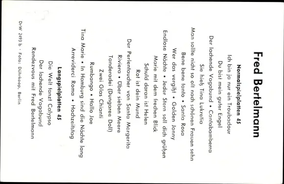 Ak Sänger Fred Bertelmann, Portrait, Electrola Schallplatten, Autogramm