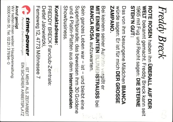Ak Sänger Freddy Breck, Portrait, Autogramm