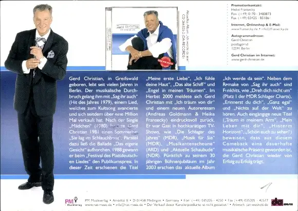 Ak Sänger Gerd Christian, Portrait, Autogramm