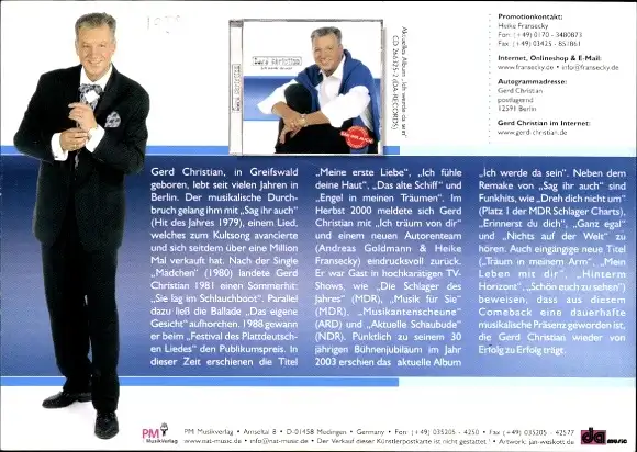 Ak Sänger Gerd Christian, Portrait, Autogramm