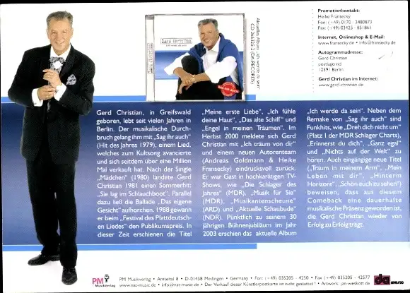 Ak Sänger Gerd Christian, Portrait, Autogramm