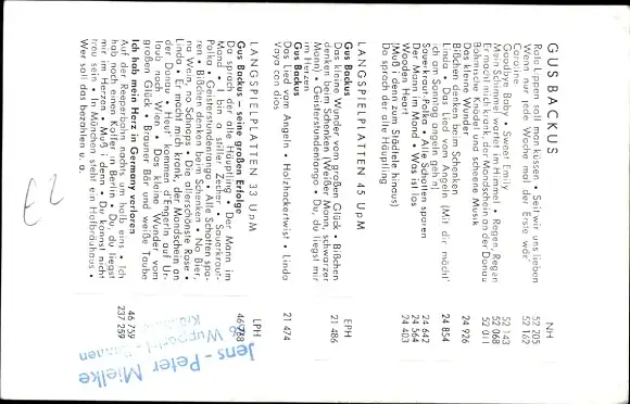 Ak Sänger Gus Backus, Polydor Verlag, Portrait, Diskographie, Autogramm